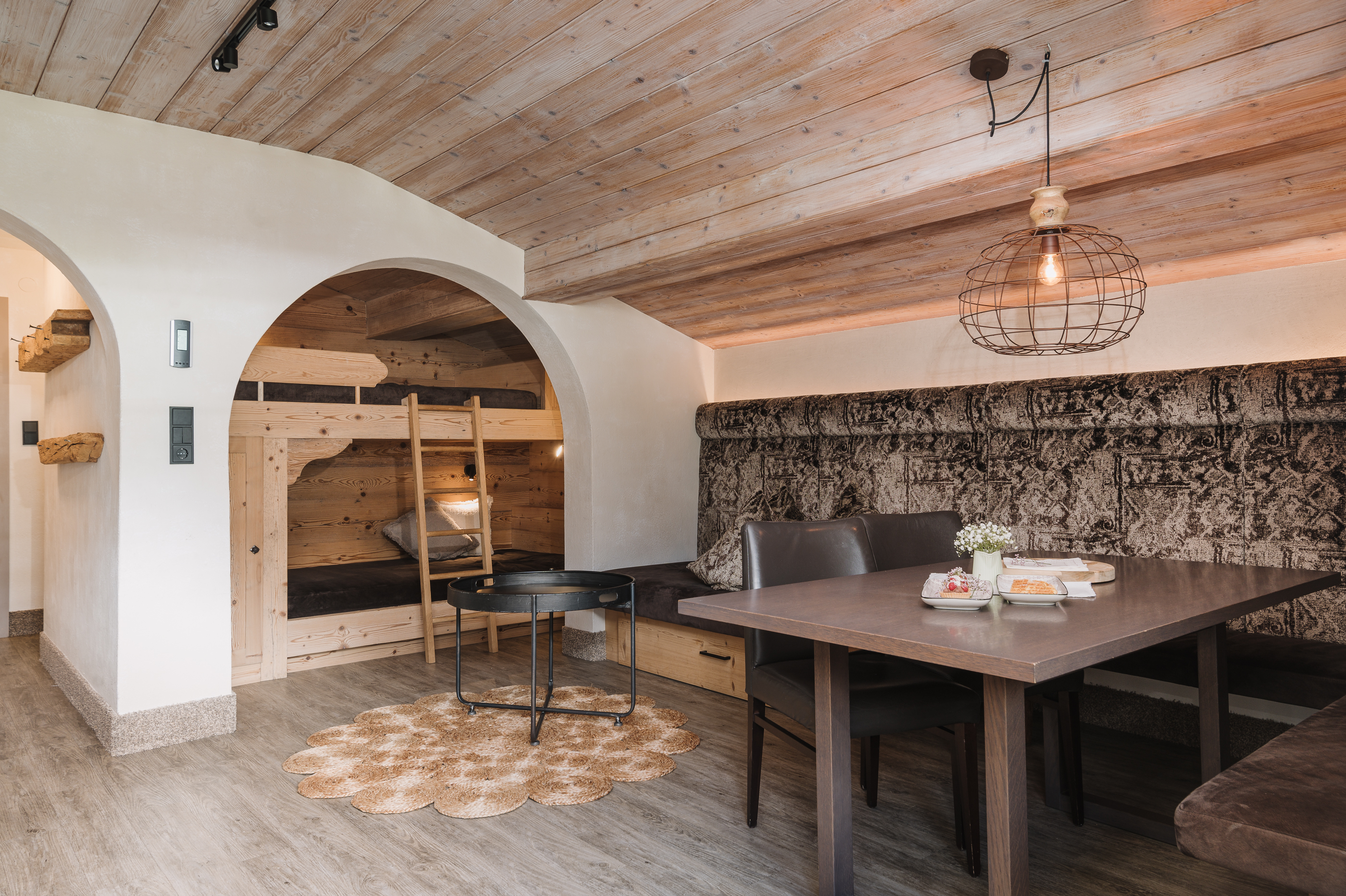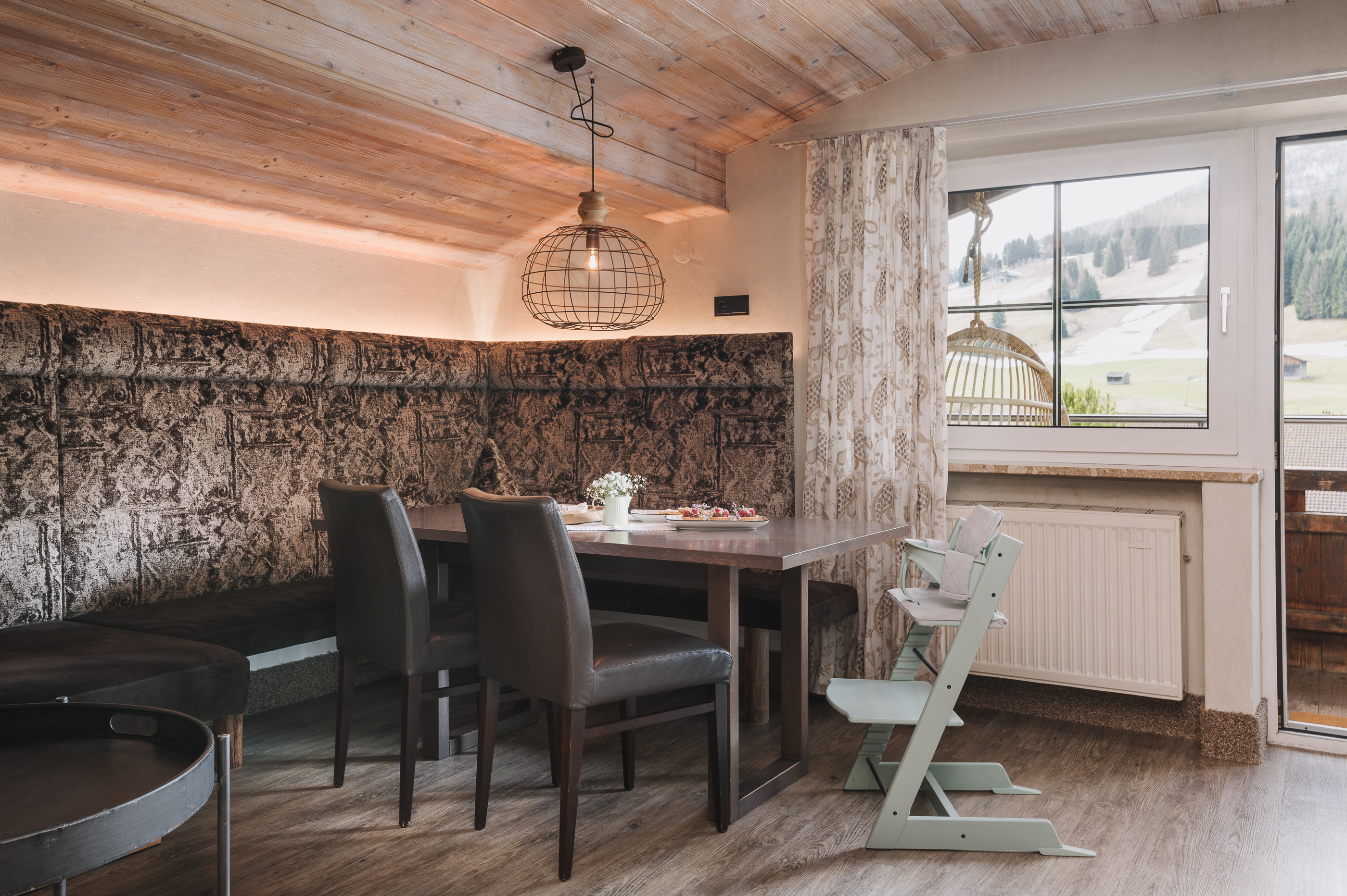 Die Ferienwohnung verknüpft Tiroler Tradition mit Moderne und zeichnet sich besonders durch einen gemütlichen Wohnbereich aus.